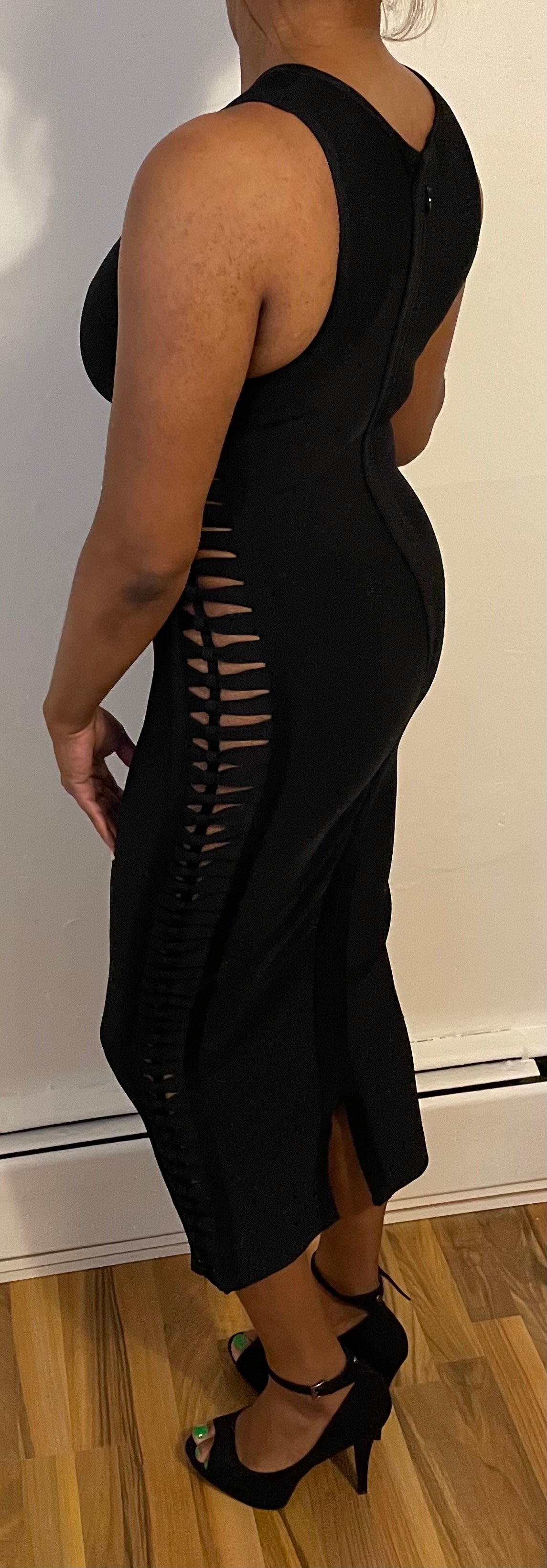 BLACK DRESS WITH SIDE SLIT OPENING